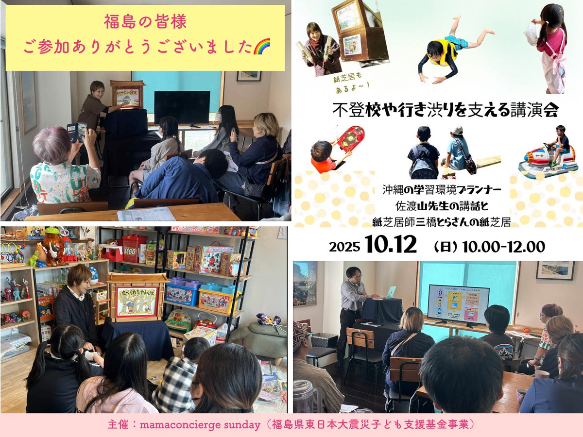 2025年10月12日、福島県富岡町の「フキトノウ」さんにて、「不登校や行き渋りを支える講演会」が開催されました。(主催:mamaconcierge sundayさん)